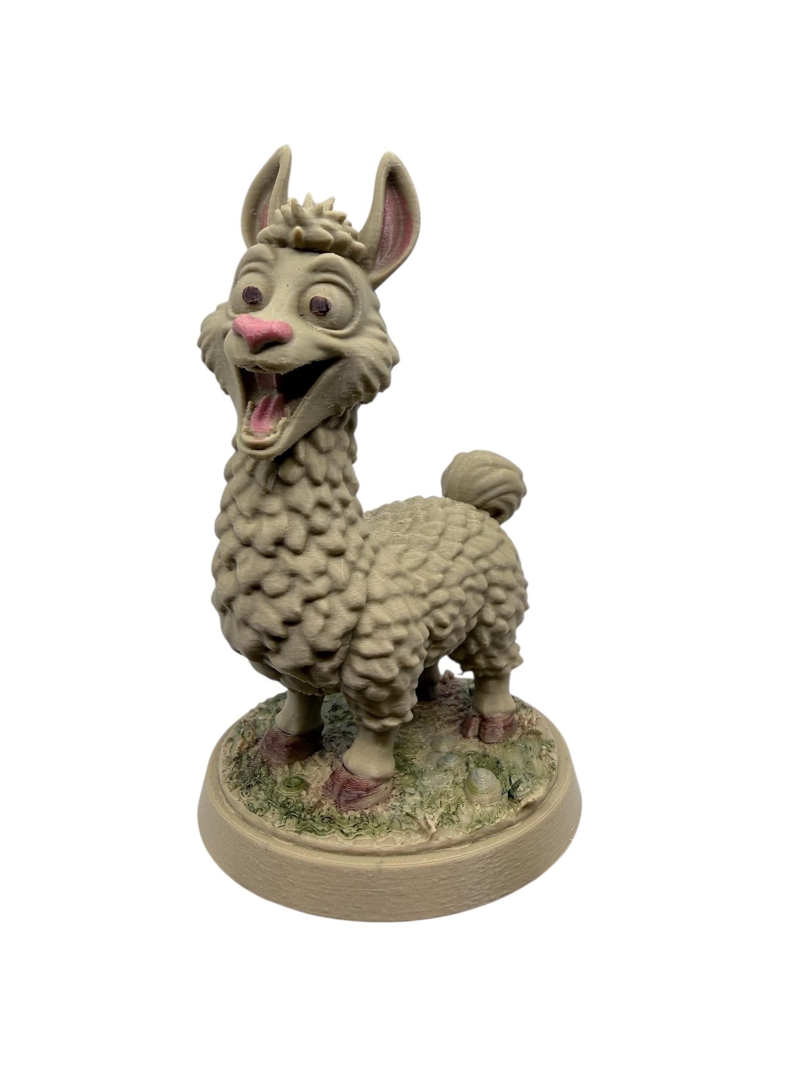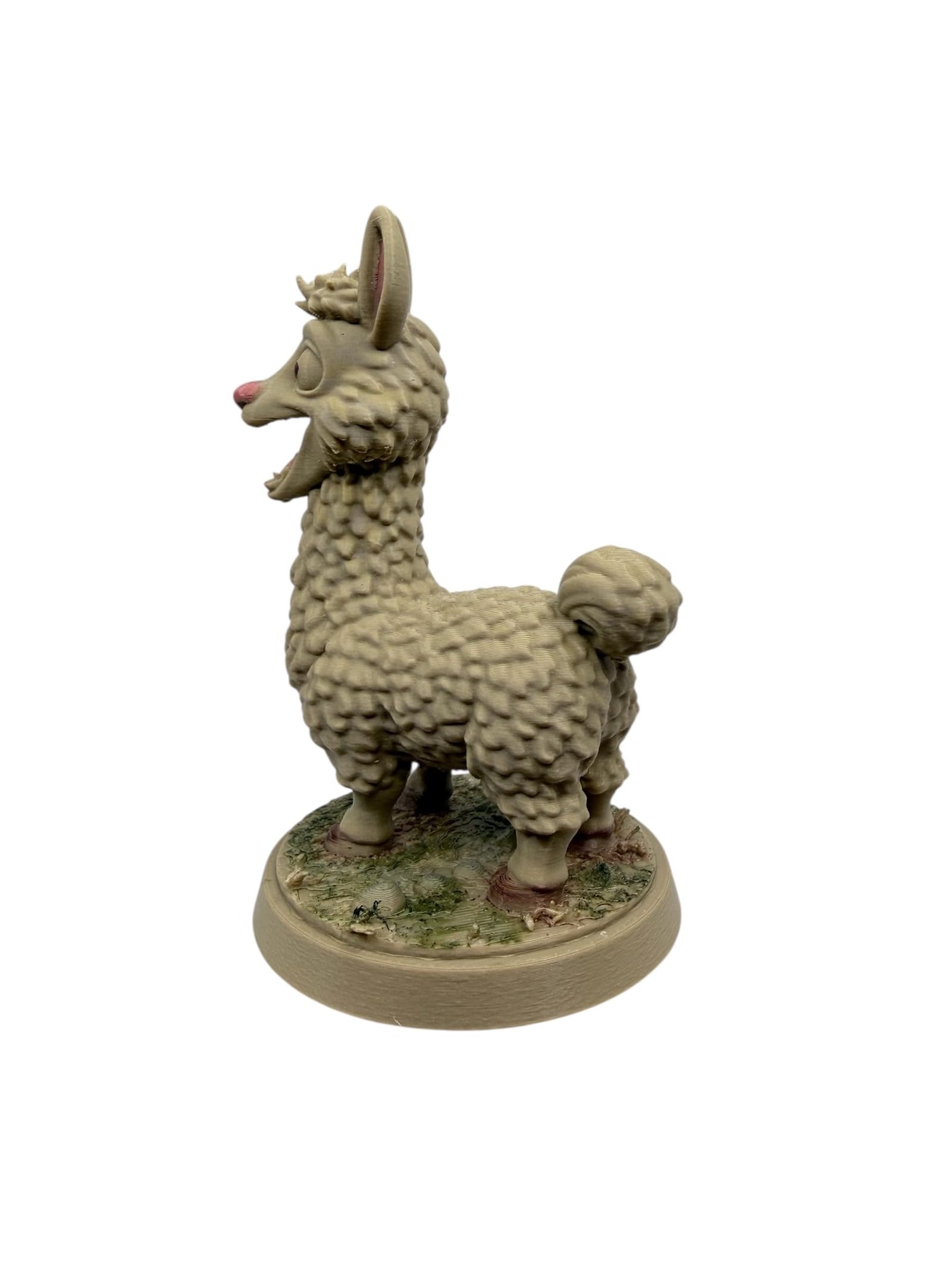 A charming handmade llama figurine, carefully 3D printed in PLA plastic.