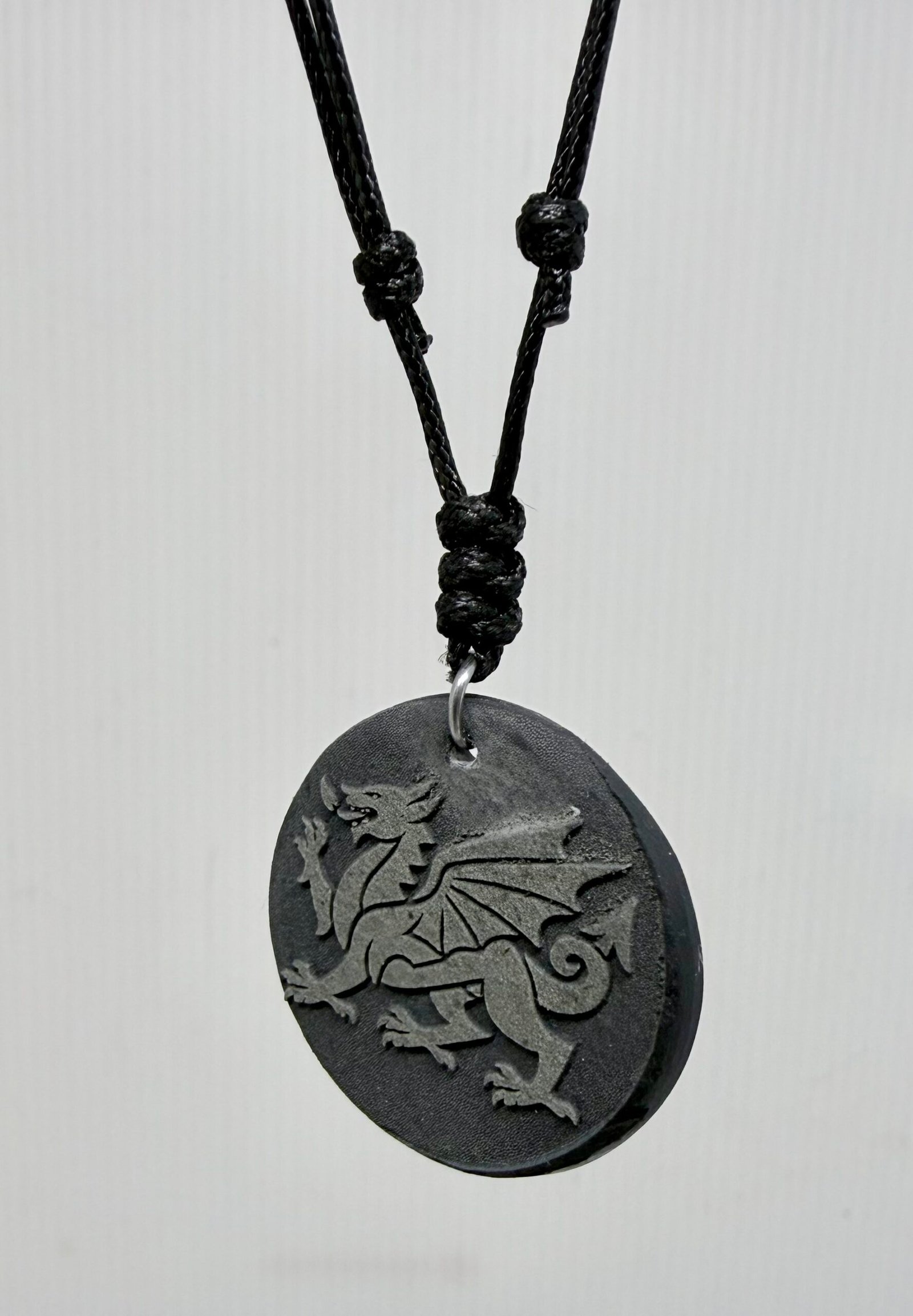 This striking handmade slate welsh dragon pendant necklace Handmade Pendant Necklace Unisex with black adjustable Cord 40-70cm length