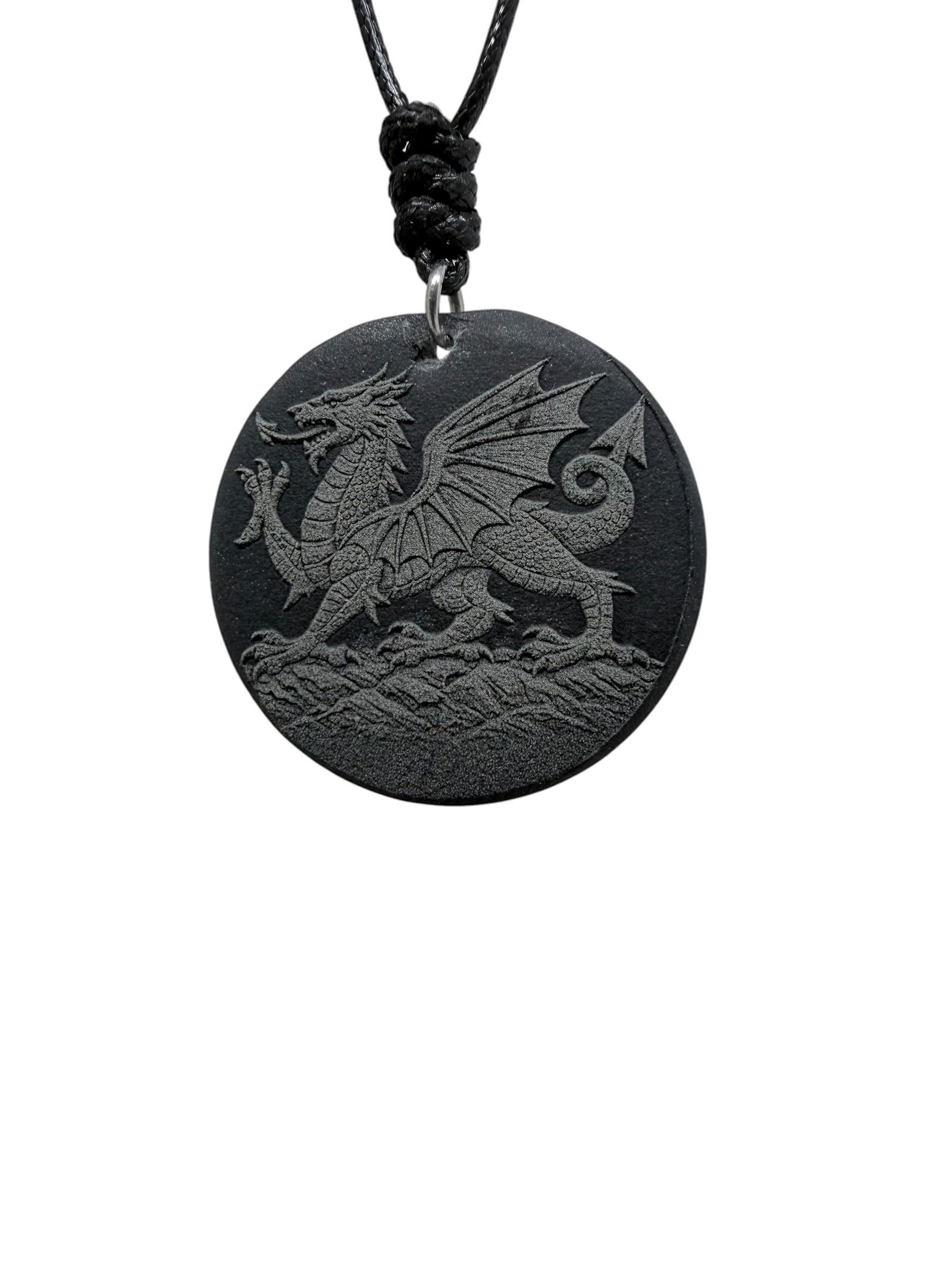 This striking handmade slate welsh dragon pendant necklace Handmade Pendant Necklace Unisex with black adjustable Cord 40-70cm length