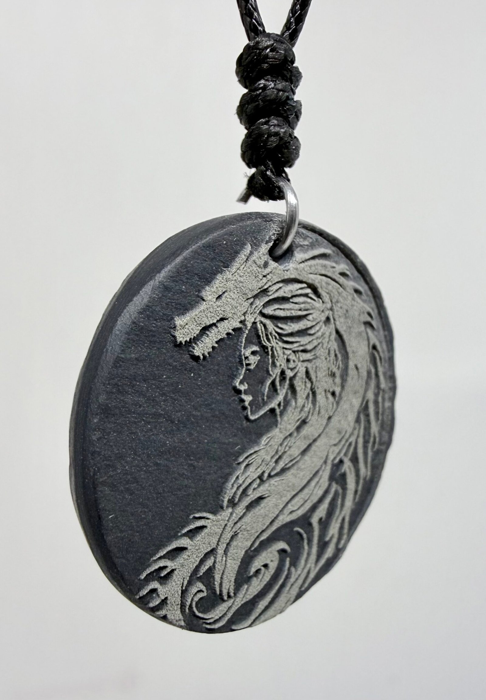 Welsh Slate Dragon & Female Head Pendant Necklace — Handmade in the UK