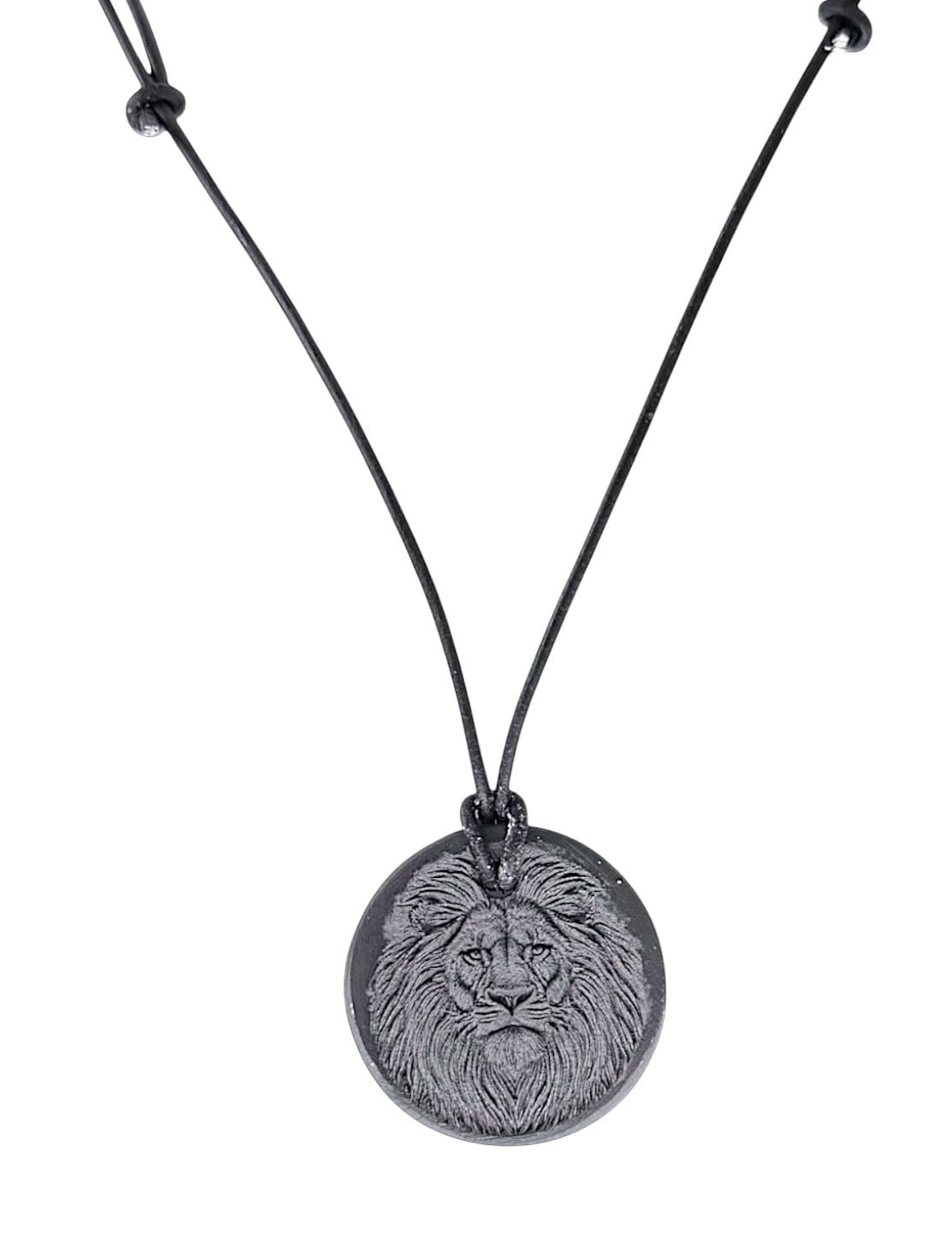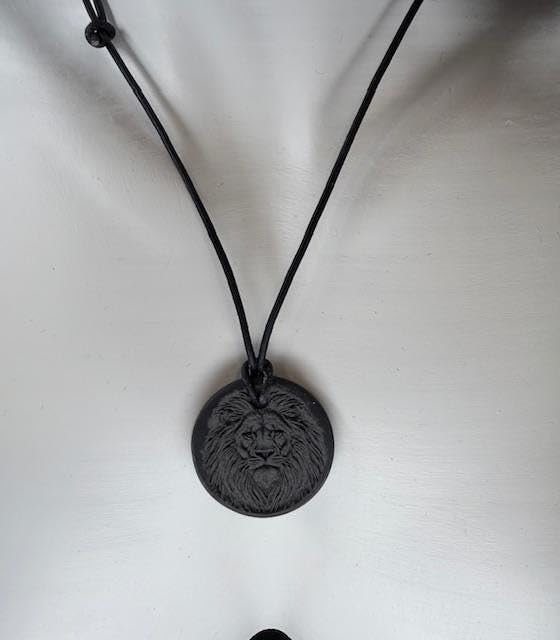 The Welsh slate lion pendant on a leather adjustable necklace is a unique and stylish piece of jewellery. The pendant features a lion design crafted from Black Welsh slate, adding a touch of elegance to any outfit. The necklace is adjustable in length, ranging from 40 to 70 cm, making it versatile for wearing at different lengths. Perfect for those who appreciate a blend of traditional and modern styles in their accessories. Display case included.