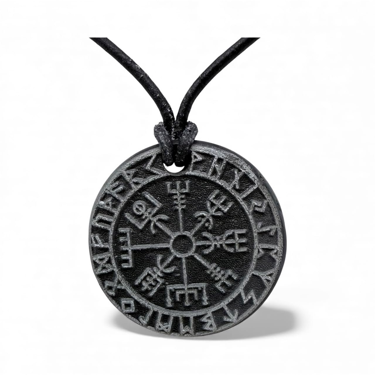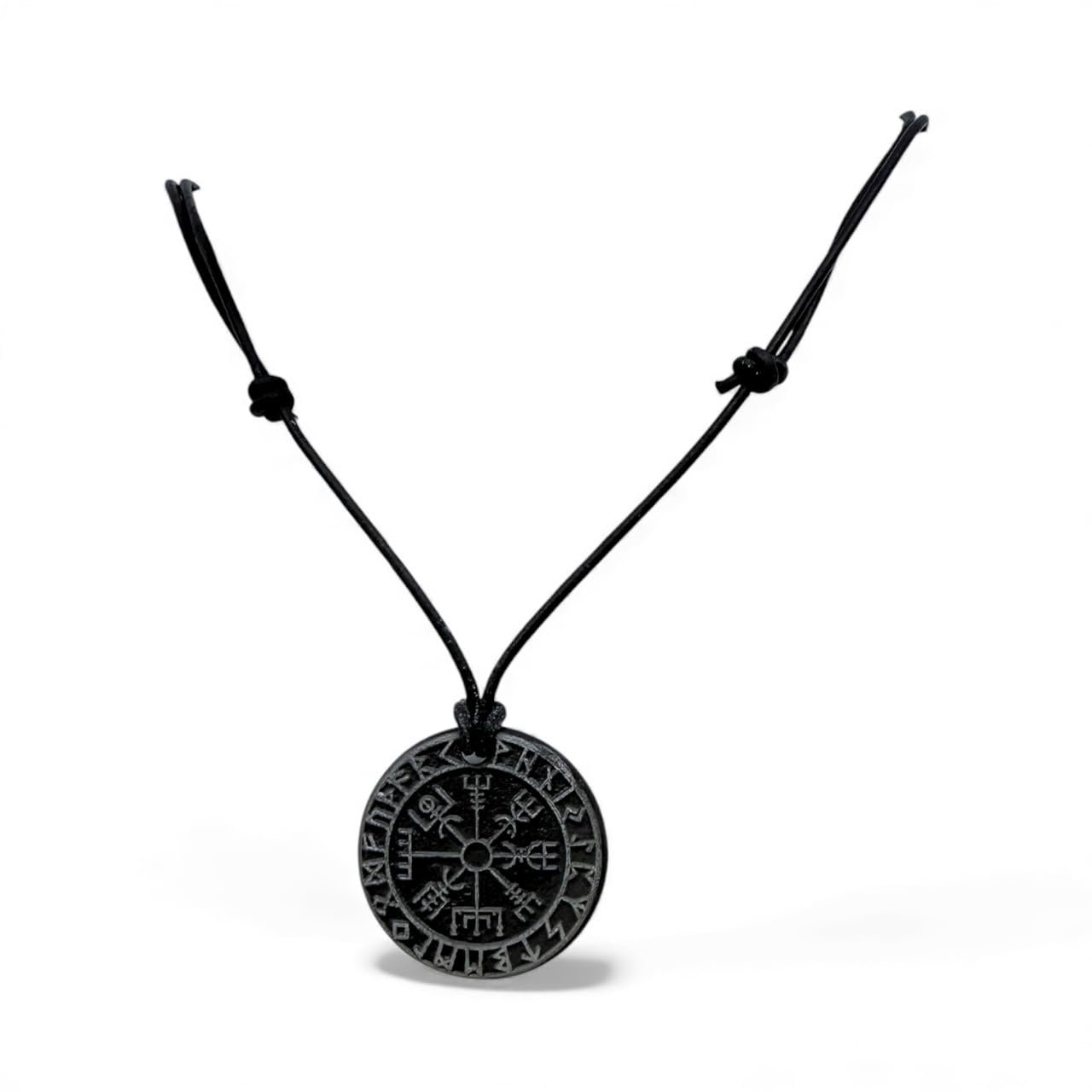 Welsh slate vegvisir pendant on black cord adjustable necklace, 40-70 cm